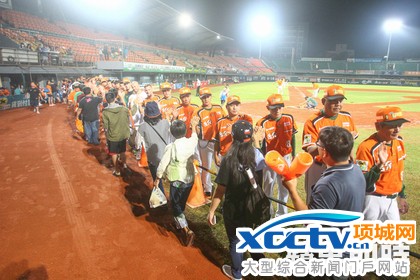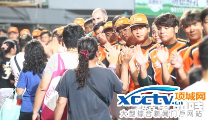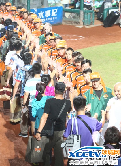 狮队本季台南最后一战,球团赛后举办全队击掌会 。赵文彬摄