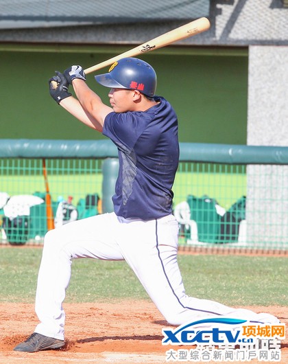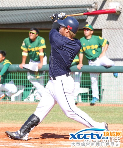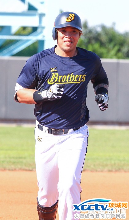 中信兄弟潘萣翔击出两分全垒打。赵文彬摄