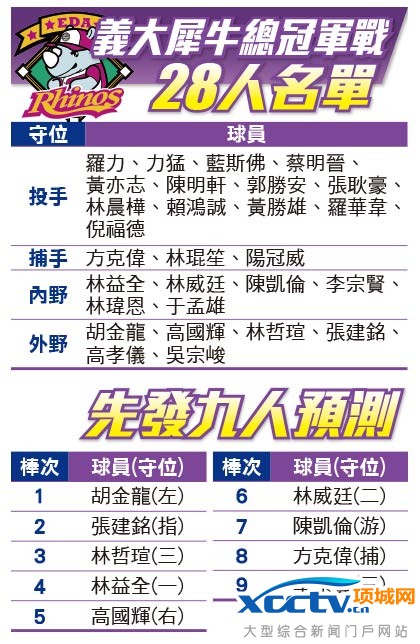 义大总冠军赛 28人名单 新人李宗贤陈明轩入选