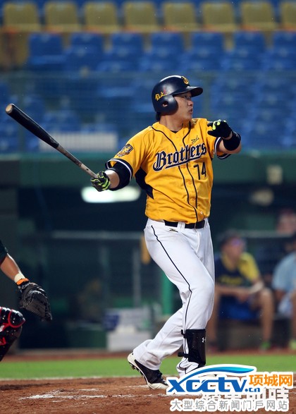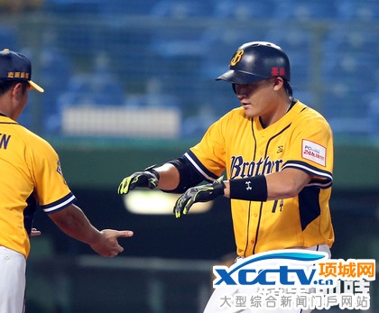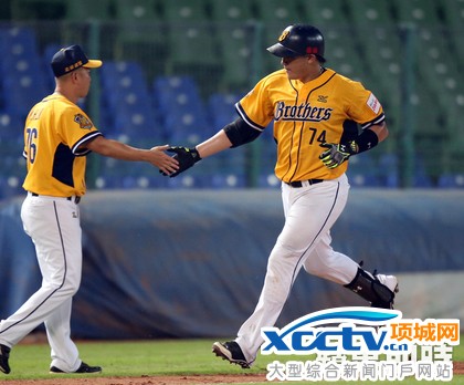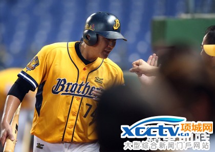 中信与运动家队练习赛,许基宏敲出阳春全垒打。李鸿明摄