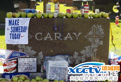小熊球迷带着旗帜、啤酒与食物,到传奇播报员卡雷(Harry Caray)的墓前,告知他夺冠的好消息。美联社