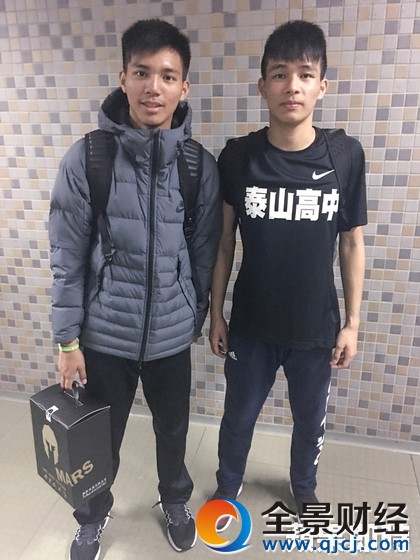 高苑工商高一替补后卫杨皓韦(左)、泰山高中杨皓喆(右)。龙柏安摄