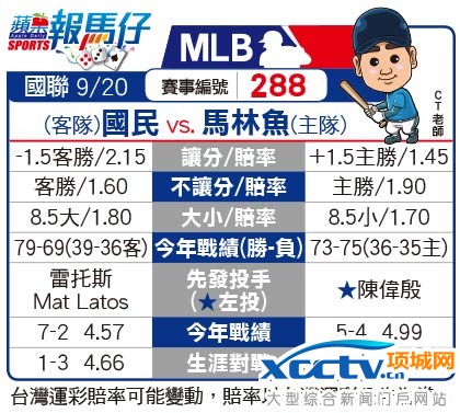 美国大联盟明天(20日)共有11场例行赛,台湾运彩开放国民@马林鱼单场投注,这是旅美投手陈伟殷在7月手肘受伤缺席2个月后,复出第1战。洛老师运动网分析师CT老师推荐小分,以下是他的分析:国民近1个月客场都在打低比分比赛,连10场客场只有最近2场对上勇士开大分比赛,对上主场近17场比赛也只打了3场大分的马林鱼,两队除了本季近12次对战盘分开在2大9小1平的成绩外。陈伟殷生涯近4次先发对上国民也是连开四场小分比赛,这场要看到高比分并不容易,推荐小分。