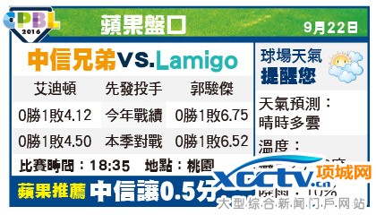 中华职棒今晚(22日)在桃园球场,进行中信兄弟对Lamigo桃猿比赛,中信派出艾迪顿先发,Lamigo由郭骏杰把关。