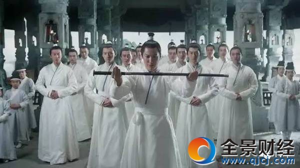 饰演“四海八荒第一美男”白真的演员于朦胧因为肤色白皙,一张瓜子脸,所以穿起青色的衣服来更显得单薄飘逸。