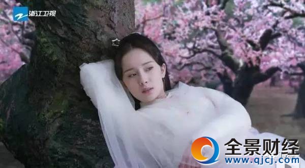 杨幂的造型可算用心,躺在桃花树上一袭白衣的造型,虽然叠加了四五层的衣服,因为用料不错,看起来依然很仙。