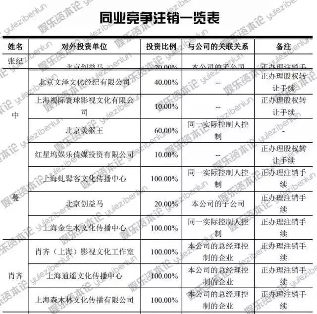 张纪中甚至还因担任湖南美猴王影业有限公司总经理,与其签订合同,等《美猴王》电影制作完成后,湖南美猴王影业有限公司不再直接或间接从事或参与任何在商业上对纪中文化构成竞争的业务及活动,如果《美猴王》电影未能在 2018 年12 月 31 前制作完成,湖南美猴王影业有限公司将以注销或重组方式解决同业竞争问题。