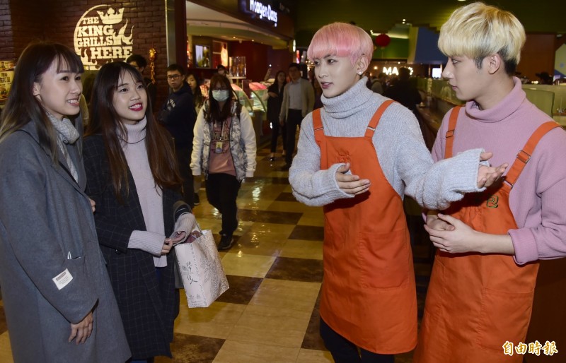 均龄21岁的南韩嫩团「UNIVERSE世界少年」去年12月底在宝岛出道,预计在台Long Stay 3个月学中文,日前他们首度担任刈包店一日店长,挑战收银、揽客、送餐、做刈包,负责招客的中国籍成员勇勇成功吸引2位漂亮的女客人捧场,让队友苍空开心大讚:「做得好!」