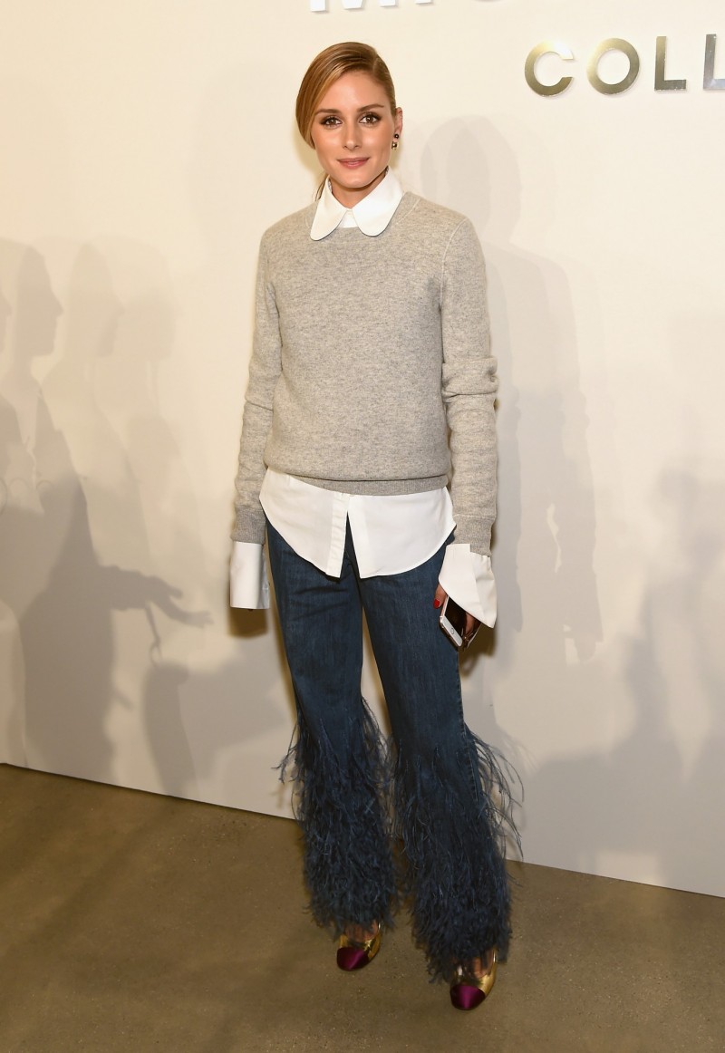 Michael Kors另一招牌单品:超长袖衬衫也颇受青睐,南韩超模朴秀珠、名媛Olivia Palermo与中国女星杨幂的看秀装扮中都有它,为本季不可错过的单品。